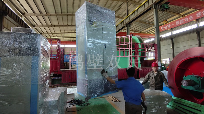 本次共出口2臺礦井提升機(jī)。其型號為直徑2米,寬度2米的JK-2.0×2.0P變頻礦井提升機(jī)。