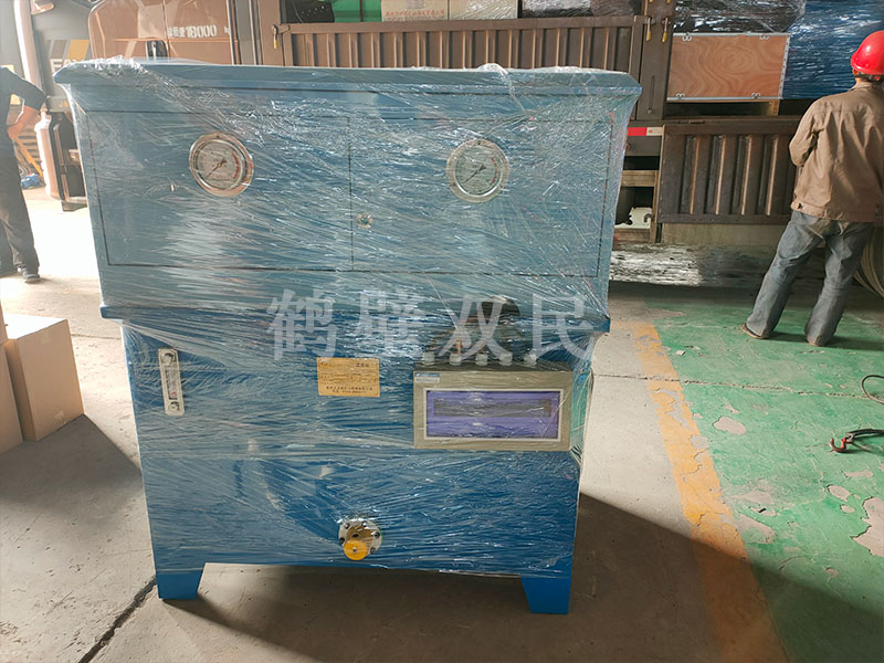這臺多繩摩擦式提升機為,鶴壁市雙民礦機生產的落地式多繩摩擦式提升機,型號為:JKMD-2.8×4PI 多繩摩擦式提升機。