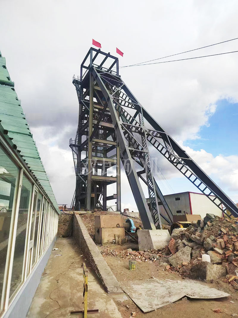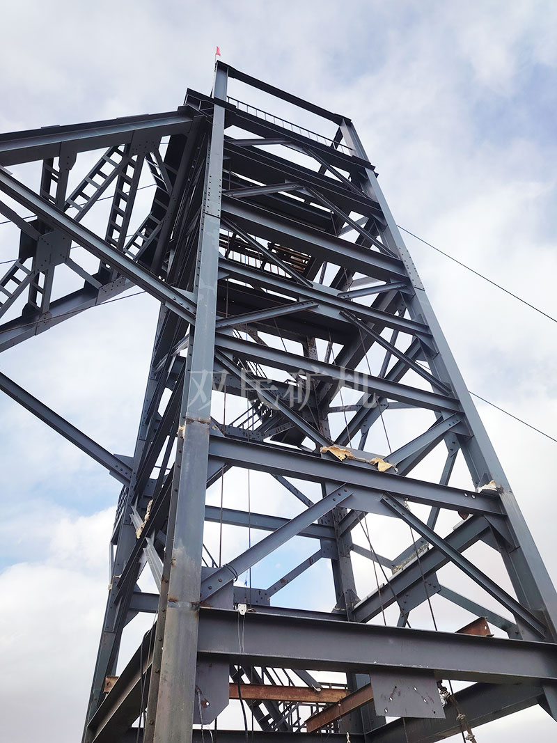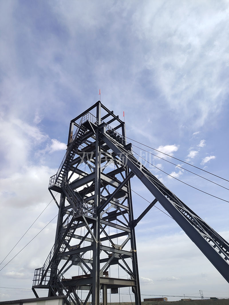 斜撐式永久井架主要特征和優點: 單斜撐式井架是隨著落地式多繩地上計技術發展而產生的,具有造型獨特,結構簡單,受力合理,工程量少,經濟實用,技術進步的特點。