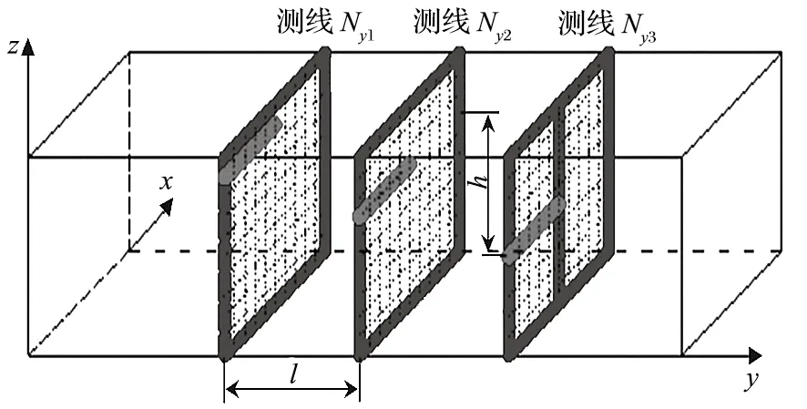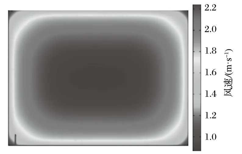 由于井下各點巷道過風(fēng)斷面大小不一、巷道表面平整度造成的風(fēng)阻大小不一等客觀現(xiàn)象,導(dǎo)致風(fēng)速監(jiān)測時常出現(xiàn)精度誤差。因此,通過改變布點方式,采取階梯網(wǎng)格方式實現(xiàn)密集布點,將原有斷面進行切割細(xì)分,然后分析斷面內(nèi)的風(fēng)流風(fēng)速分布規(guī)律,從而得出相對準(zhǔn)確的平均風(fēng)速在斷面內(nèi)的實際位置。經(jīng)過優(yōu)化后,將風(fēng)速傳感器進行定點安裝,以此提升風(fēng)速采集的準(zhǔn)確性。階梯網(wǎng)格方式分析風(fēng)速分布規(guī)律如圖1 所示,矩形斷面實測風(fēng)速分布如圖2 所示。