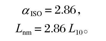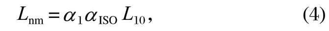 式中:Lnm 為修正額定壽命;α1 為可靠度修正系數;αISO 為壽命修正系數。
