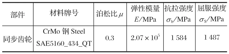 表2 同步齒輪材料參數