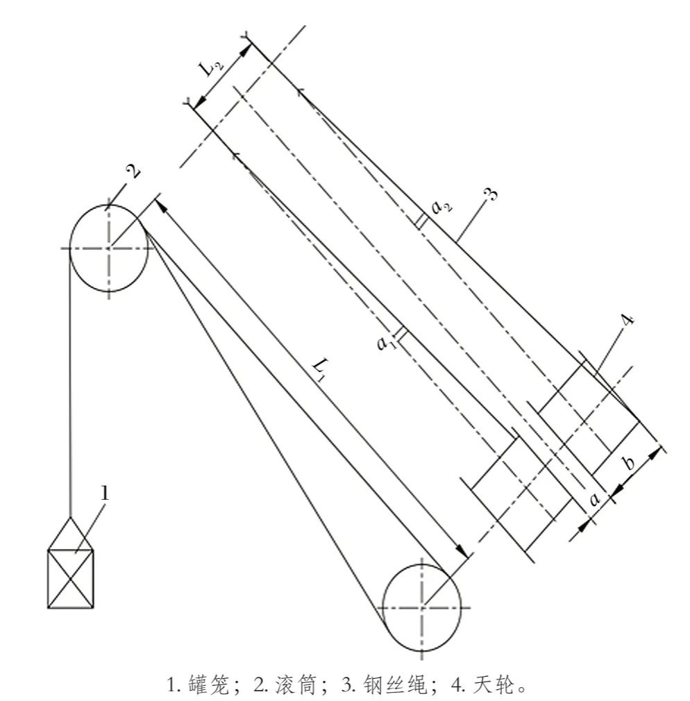面對此種狀況,需對鋼絲繩天輪偏角進行調整,調整方法諸多,一種方法是更換天輪襯墊,以減少鋼絲繩對天輪輪緣的磨損,但隨使用時間的延長,襯墊磨損亦會加劇,鋼絲繩終將再度產生干涉;另一方法為調整滾筒的水平位置,使滾筒整體平移,將原基礎拆除并重新施工,但工程量大且耗時費力。
